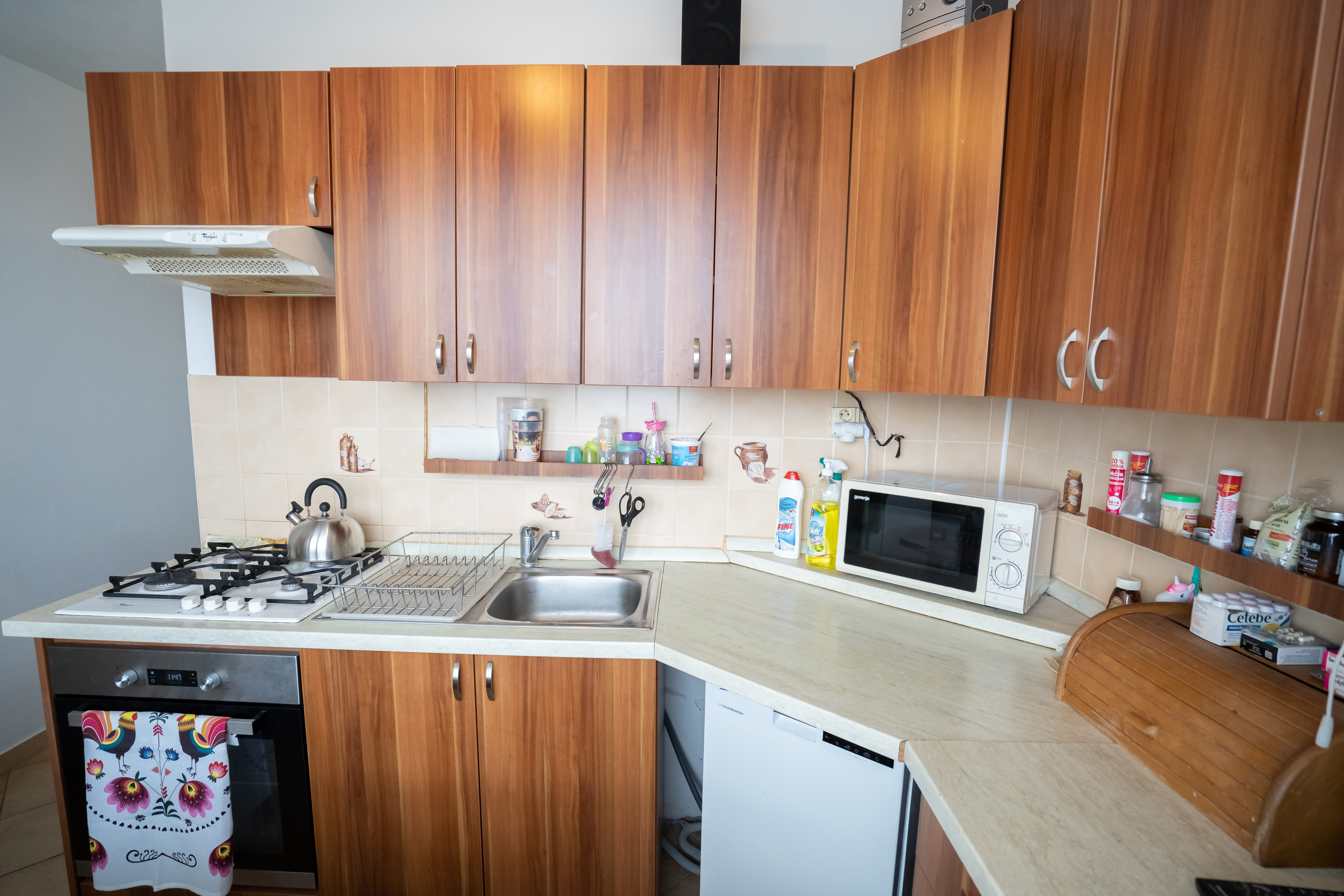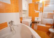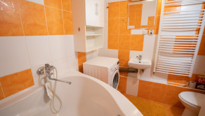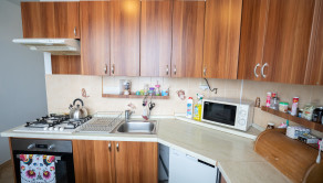 Kuchynská linka je s plynovou varnou doskou a el. rúrou. V kúpeľni sa nachádza rohová vaňa a toaleta. Dostatok úložného priestoru Vám zabezpečí vstavaná skriňa v spálni a samozrejme pivnica. Navyše je v byte aj špajza/šatník.
